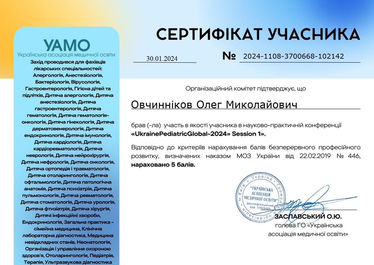 Науково-практична конференція: «UkrainePediatricGlobal-2024»Session 1»