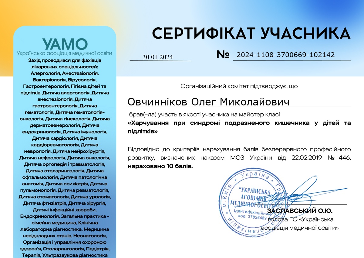 Майстер клас: «Харчування при синдромі подразненого кишечника у дітец та підлітків»
