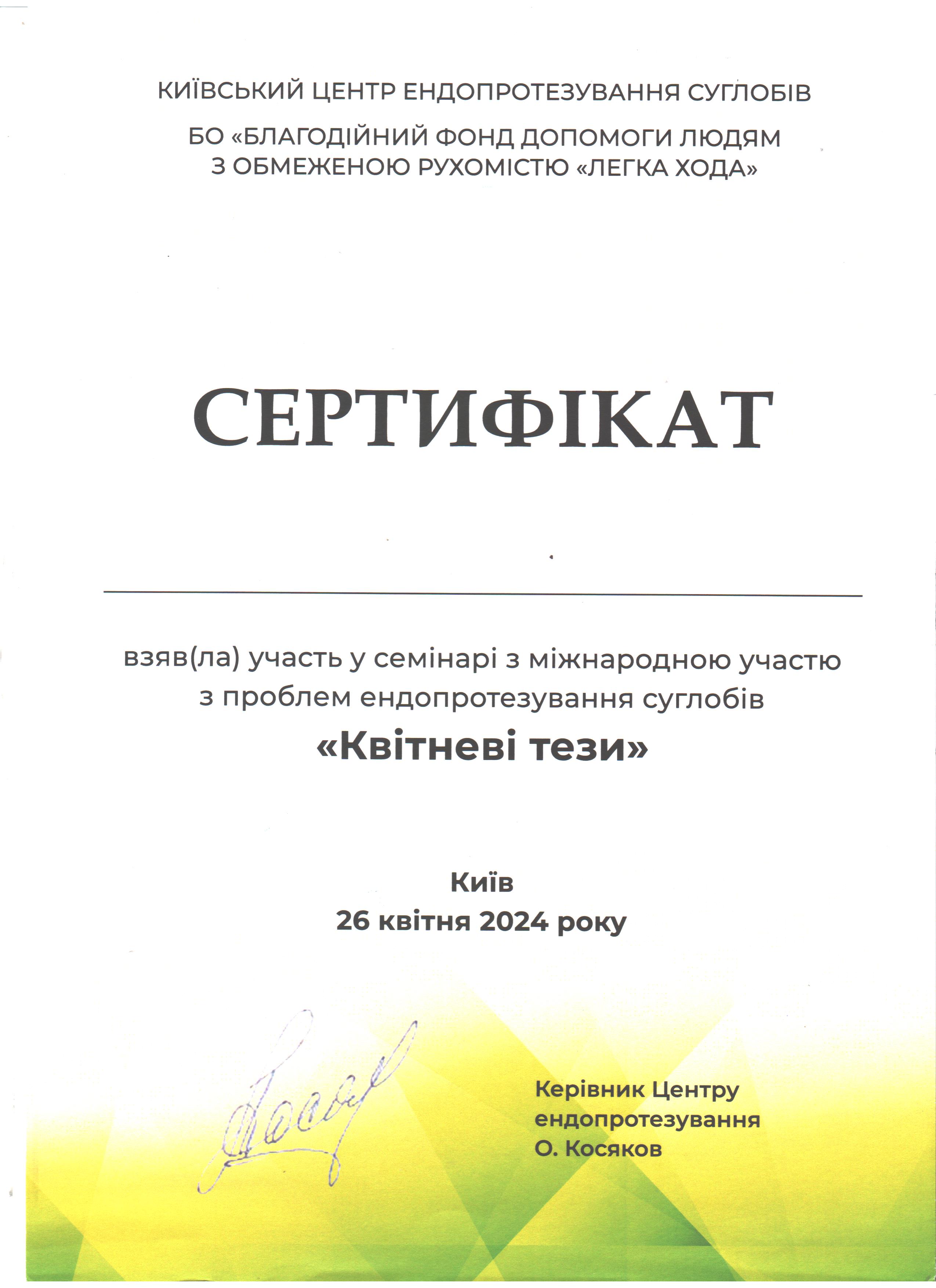 Семінар з міжнародною участю з проблем ендопротезування суглобів "Квітневи тези"