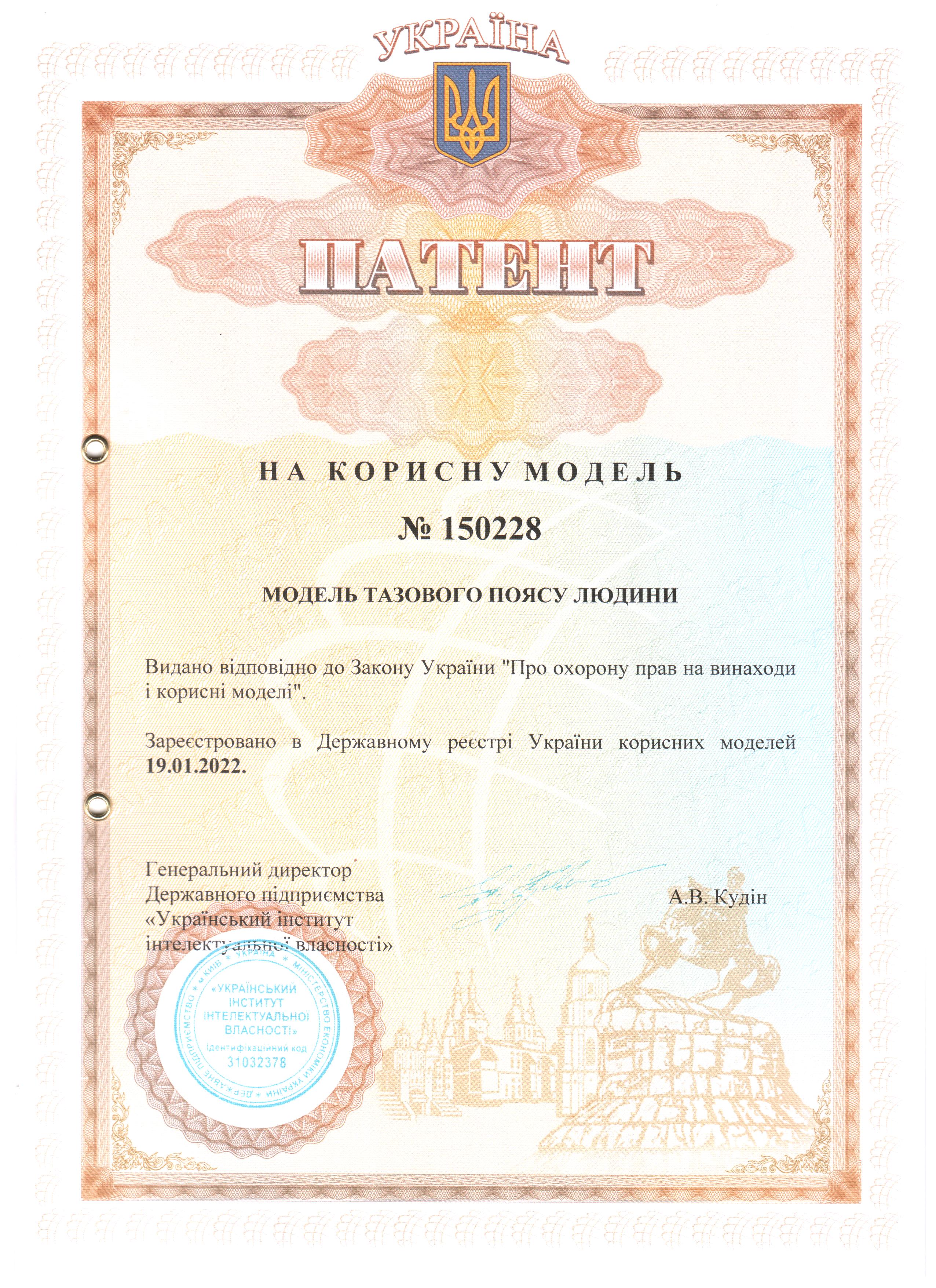 Модель тазового поясу людини містить комп’ютерне зображення з’єднаних між собою, як одне ціле, окремих фрагментів поперекового відділу хребта, таза, кульшового суглоба, а також системи навантаження таза у вигляді ваги верхній частини тіла і відвідних м’язів. В модель додатково введені привідні м’язи, при цьому зображення таза виконане у вигляді горизонтально розташованої балки , шарнірно закріпленої в середній її частині на вертикально встановленому кронштейні, що імітує кульшовий суглоб, а зображення привідних і відвідних м’язів та ваги верхньої частини тіла людини – у вигляді відповідних силових векторів, роздільно розташованих під визначеними заздалегідь, на основі графічної обробки рентгенограми пацієнта, кутами до горизонтально розташованої балки і силовими величинами навантаження на таз, а також на визначених відстанях кожного із зазначених векторів від точок їх взаємодії з балкою до вертикальної осі кронштейна.