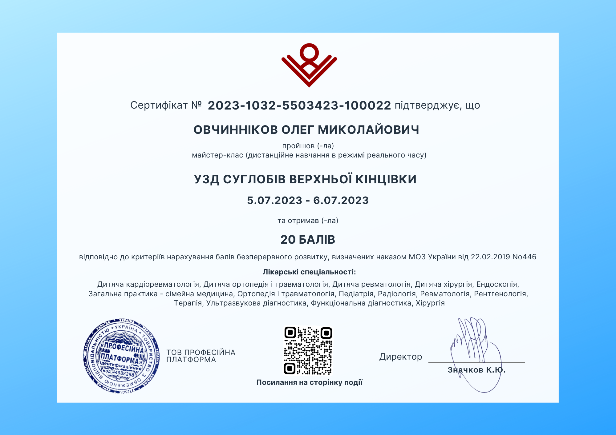 Майстер клас (дистанційне навчання в режимі реального часу): «УЗД суглобів верхньої кінцівки»