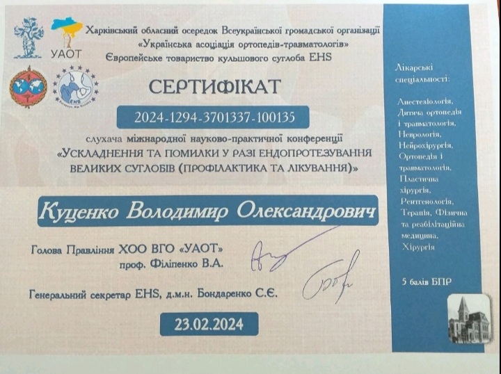 міждународна науково-практична конференція "Ускладнення та помилки у разі ендопротезування великих суглобів (профілактика та лікування) "